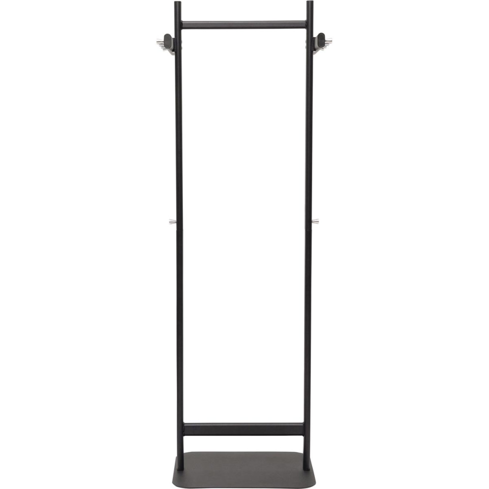 Porte-manteau sur pied élégant, en acier noir, doté de 8 patères, d’une tringle à vêtements et de 2 patères pour sacs à main. Conçu pour les espaces de bureau ou d’accueil nécessitant une solution robuste et stable pour suspendre vêtements et accessoires.