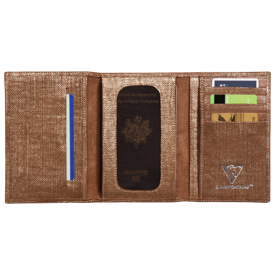 KLEO-PATHRA CUIR Porte-papiers 1x10x15 cm Bronze En véritable cuir d'agneau, souple et agréable au toucher. Le tannage est végétal aux extraits entre autres de mimosa et quebracho et sans chrome ni arsenic afin de préserver l'environnement ainsi que les opérateurs sur place. Cet accessoire est idéal pour ranger ses cartes, ses documents d'identité, ou encore de l'argent. Ce porte-papiers se compose de 3 parties repliables et comprend : * une poche transparente au centre pour y glisser permis de conduire ou passeport par exemple,* à droite, 5 fentes permettent le stockage des cartes (CB, cartes de fidélité..), * à gauche, une fente complémentaire met en évidence la carte dont vous avez besoin quotidiennement. Isolée, elle est facile à retrouver et à ranger et vous permet de gagner du temps. Le porte papier est compact afin d'entrer dans tous les sac. L'aspect original du cuir avec un fini irisé rend cette pièce tendance ! Idéal pour organiser ses documents en tous genres. Notre gamme de maroquinerie propose des produits hautement qualitatifs et tendances. Nos produits en cuir sont pensés, fabriqués et testés avec la même exigence que nos produits de papeterie. Nous mettons tout notre savoir-faire au service de vos besoins.