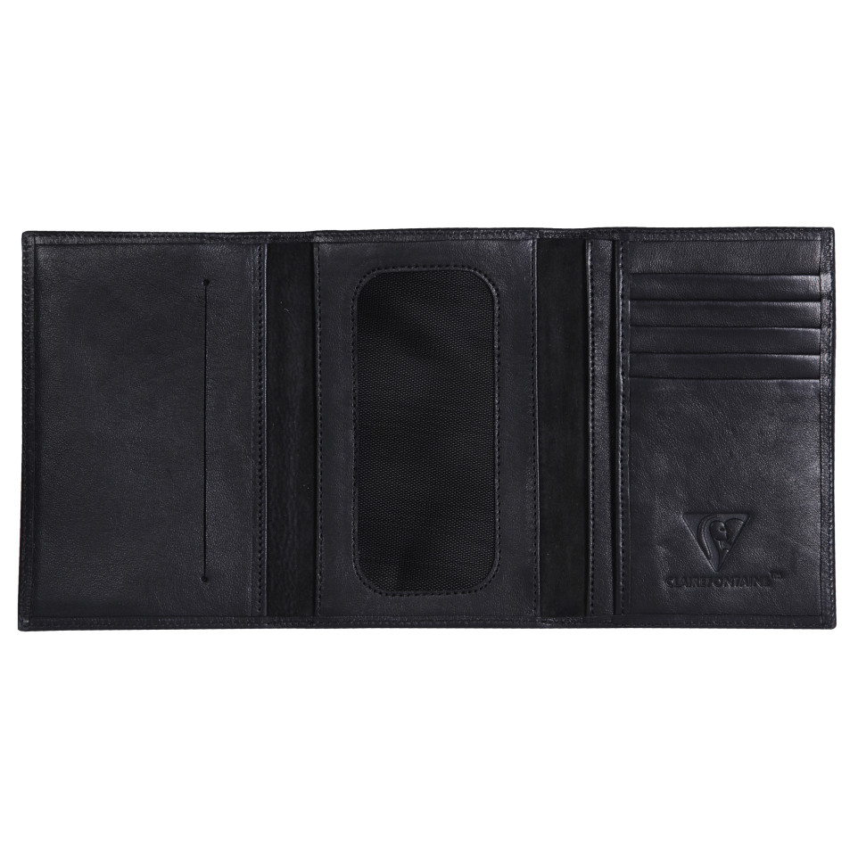 CUIR Porte-papiers 15x1x10 cm Noir En véritable cuir d'agneau, souple et agréable au toucher. Le tannage est végétal aux extraits entre autres de mimosa et quebracho et sans chrome ni arsenic afin de préserver l'environnement ainsi que les opérateurs sur place. Ce porte-papier dispose de 5 fentes pour les cartes, d'1 poche transparente pour le passeport ou autre document essentiel, 1 fente pour les billets ainsi que d'une fente complémentaire pour la carte d'identité. C'est un produit idéal pour organiser ses documents en tout genre. Produit mixte. Notre gamme de maroquinerie propose des produits hautement qualitatifs et tendances. Nos produits en cuir sont pensés, fabriqués et testés avec la même exigence que nos produits de papeterie. Nous mettons tout notre savoir-faire au service de vos besoins.