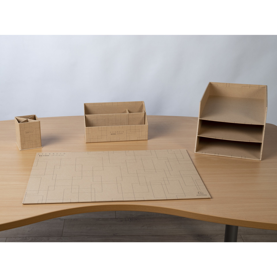 Pot à crayons carré 4 compartiments carton Eterneco Le pot à crayon Eterneco en carton vous permet grâce à ses 4 compartiments de ranger vos stylos et petits ustensiles de bureau par t ypologie/usage. Sa grande hauteur permet de ranger tous les ustensiles du bureau, y compris les plus grands (ciseaux, coupe-lettre, double-décimètre...) sans risque de chute. Son format carré et socle élargi permettent une plus grande stabilité. En carton recyclé recouvert de la carte révolutionnaire Eterneco, enduite d'huile végétale qui permet une excellente protection à l'eau. Les produits de la gamme Eterneco sont ainsi garantis résistants, durables mais également faciles à recycler. Ce produit est certifié PEFC et donc issu de fôrets gérées durablement .