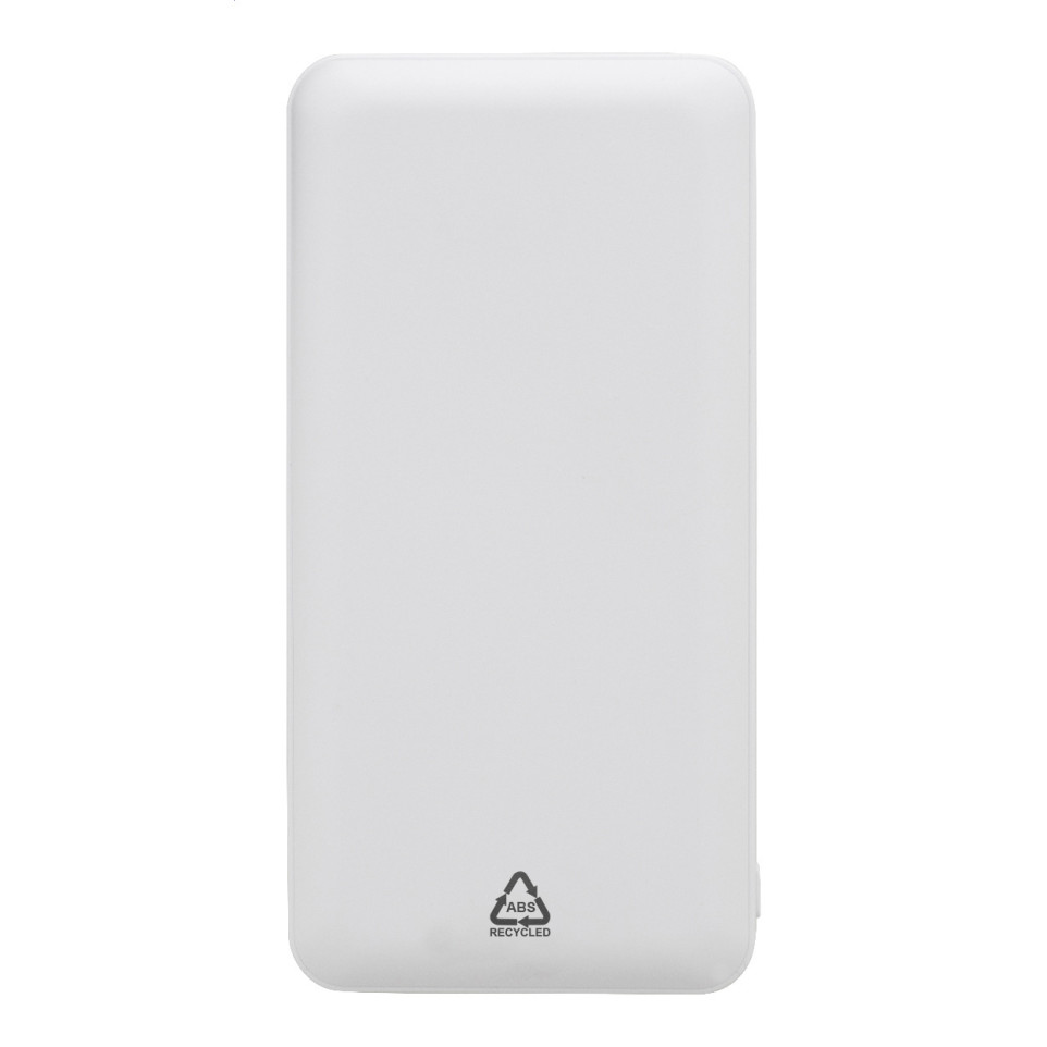 Power bank XXL Rabobank blanc, conçu en ABS recyclé, offre une capacité de 20000 mAh idéale pour recharger smartphones, tablettes et accessoires lors de déplacements ou événements professionnels.