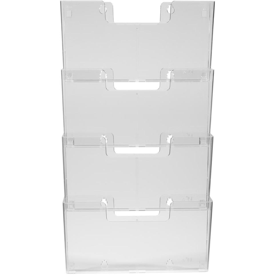 Présentoir de documents mural Europel, composé de 4 bacs à courriers pour documents au format A4 paysage. Idéal pour organiser et exposer des brochures, formulaires ou dossiers dans les espaces professionnels ou publics.
