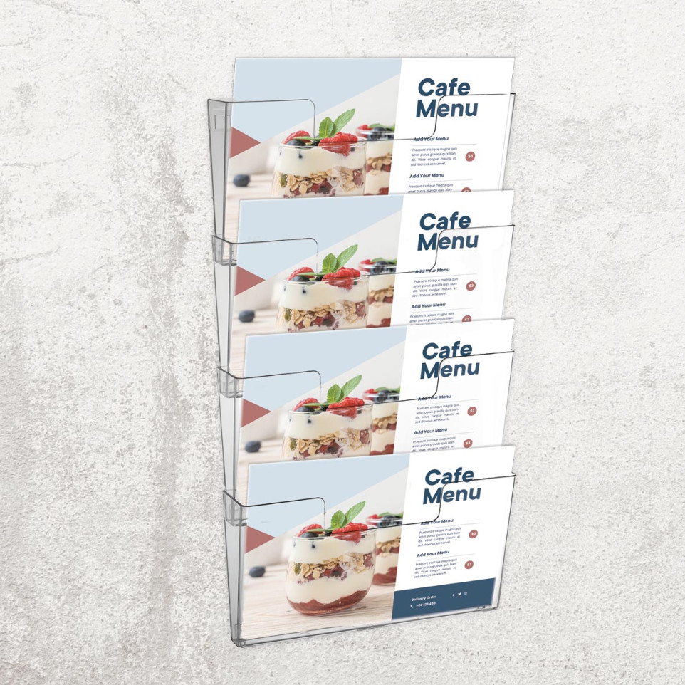 Montez le présentoir au mur à l’endroit souhaité. Glissez simplement vos documents A4 dans chaque bac, puis reliez plusieurs modules pour augmenter la capacité ou adapter la configuration à votre espace. Parfait pour optimiser la visibilité et l’accès aux documents.