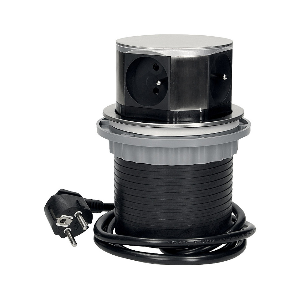 Une simple pression sur le dessus active l’ouverture automatique de la prise, permettant d’alimenter jusqu’à 3 appareils électriques et de recharger simultanément deux appareils via USB. Après utilisation, une nouvelle pression escamote la prise pour la rendre discrète et sécurisée sous le plan de travail.