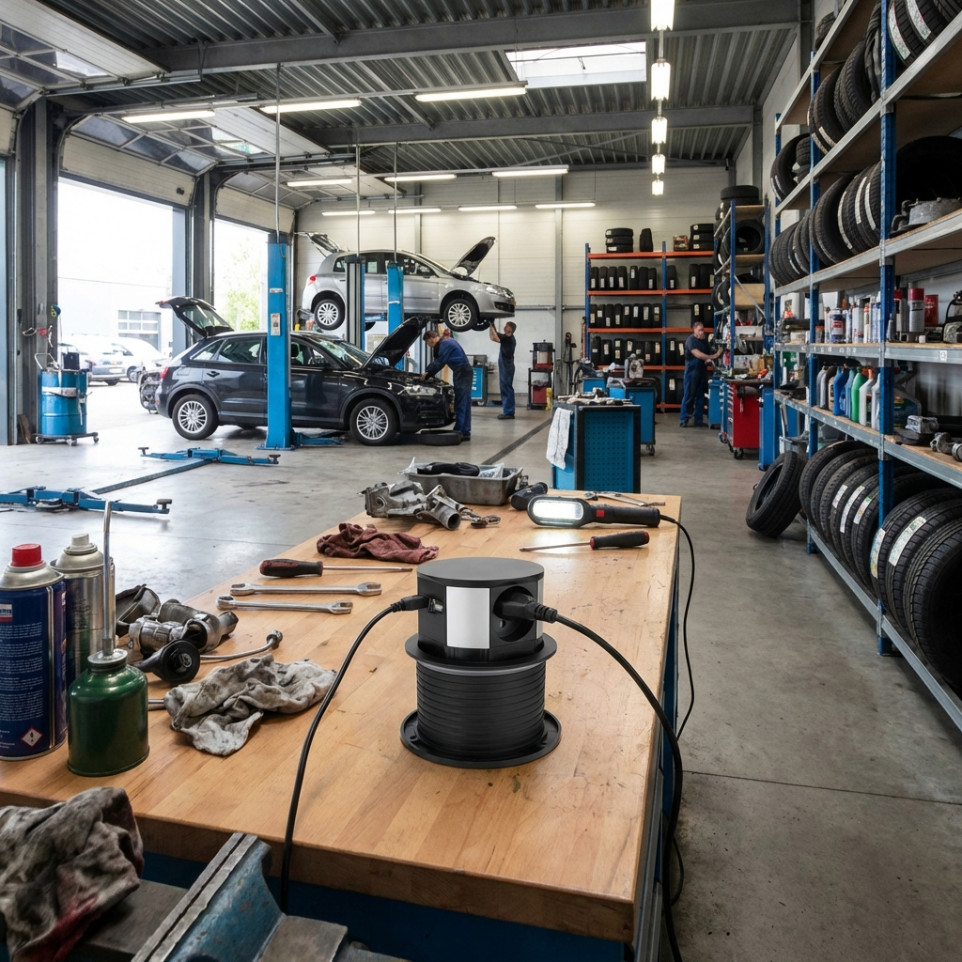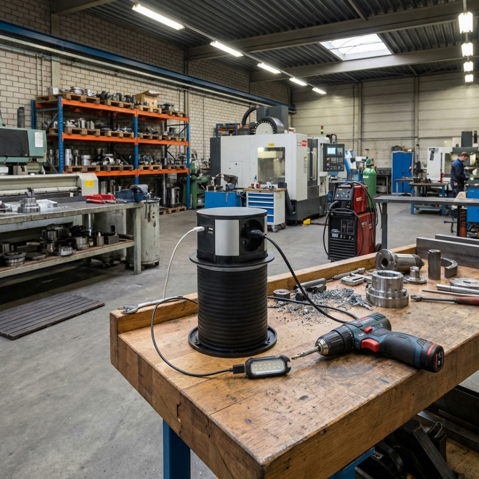 Pour installer, il suffit de percer un trou de 100 mm dans le plan de travail puis d’y insérer la prise. Un simple appui sur le dessus permet de faire apparaître ou disparaître le bloc, prêt à alimenter trois appareils électriques et deux périphériques USB en même temps.