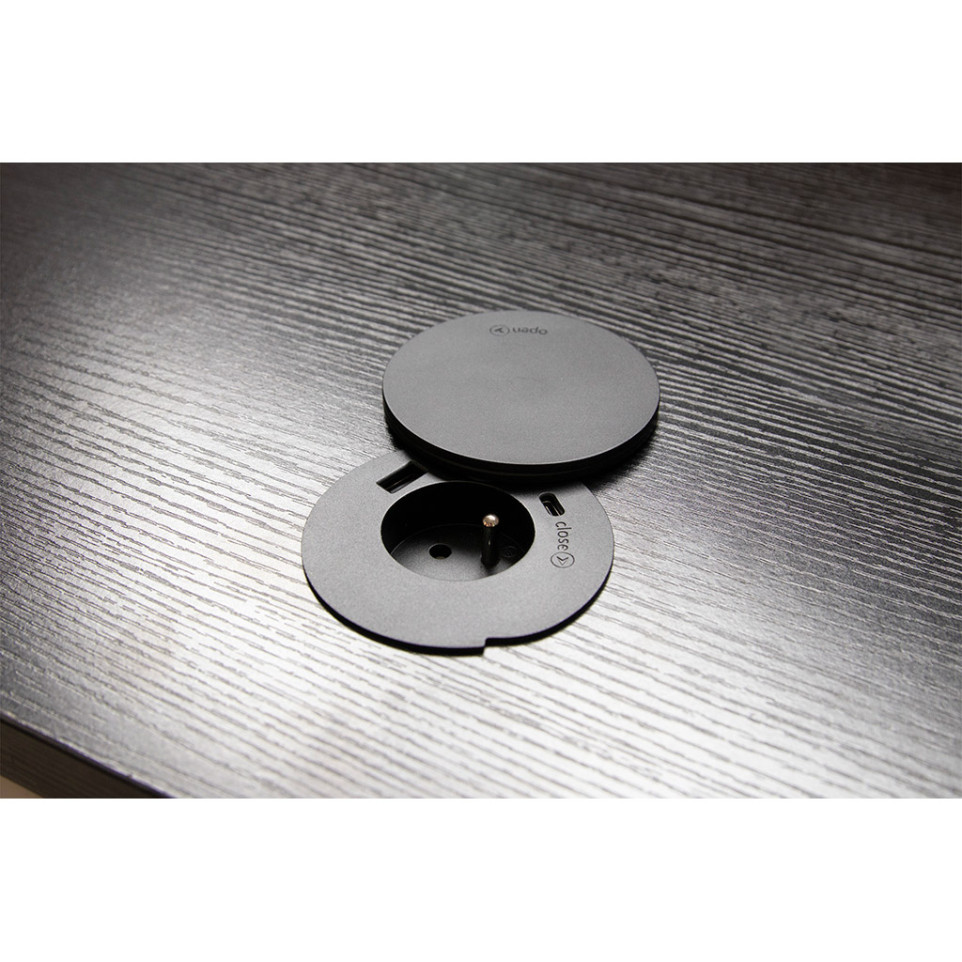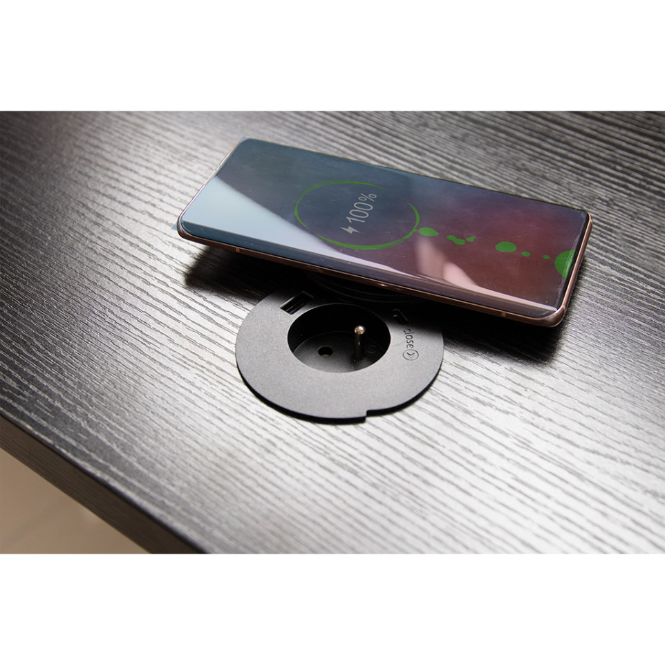 Il suffit d’insérer le module dans un perçage de 60mm sur le plan de travail. Branchez votre appareil sur la prise secteur et chargez vos appareils mobiles via le port USB-A, USB-C ou la zone de recharge à induction, tous accessibles en un geste et rangés discrètement une fois inutilisés.