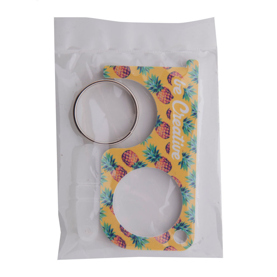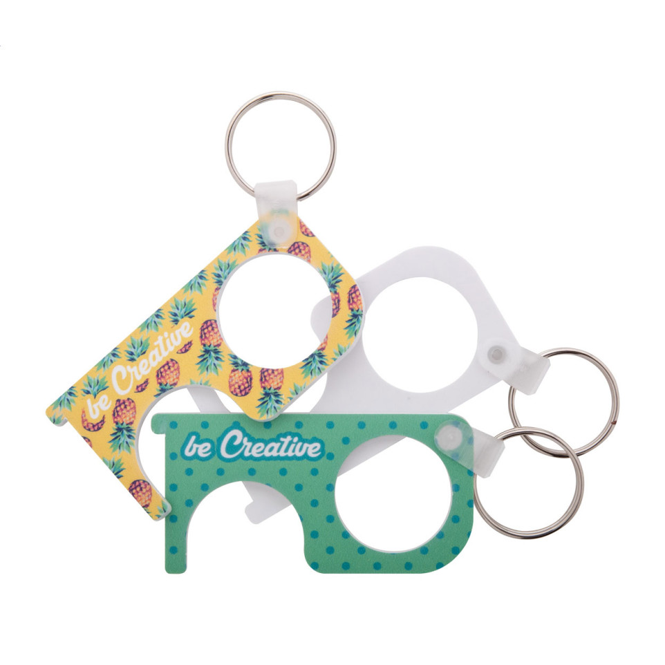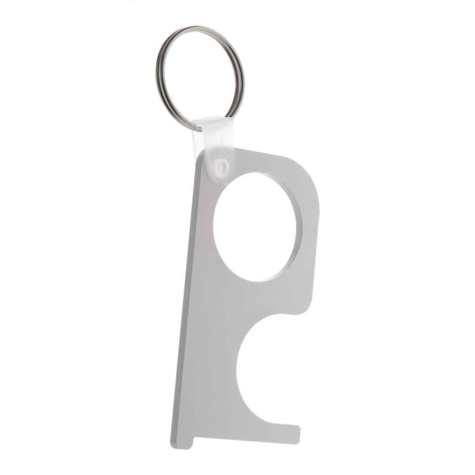 Voir des produits similairesPorte-clé hygiénique en acrylique blanc avec impression digitale personnalisable. Solution pratique pour éviter le contact direct avec les surfaces publiques tout en servant de porte-clés fonctionnel grâce à sa bague métallique.