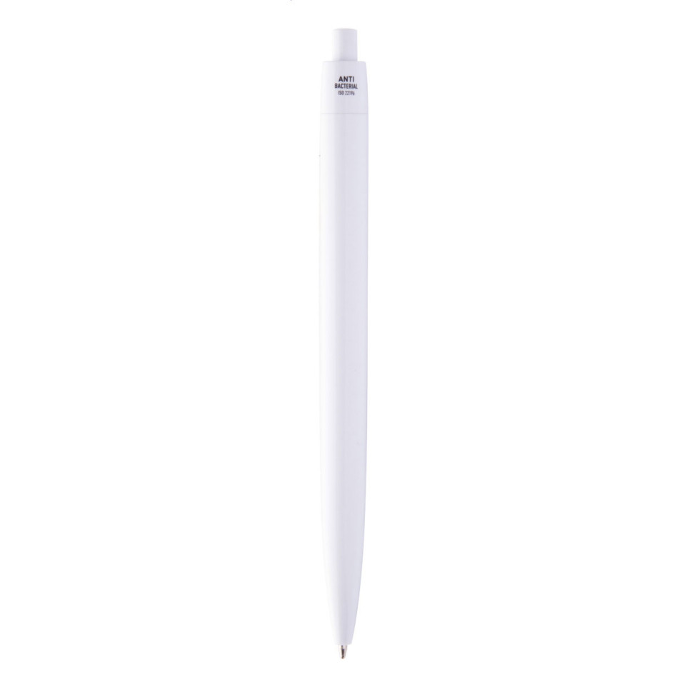 Stylo à bille en plastique blanc doté d’un baril antibactérien, conçu pour limiter la propagation des bactéries lors d’une utilisation quotidienne en milieu professionnel ou public. Équipé d’un poussoir et d’une encre bleue.