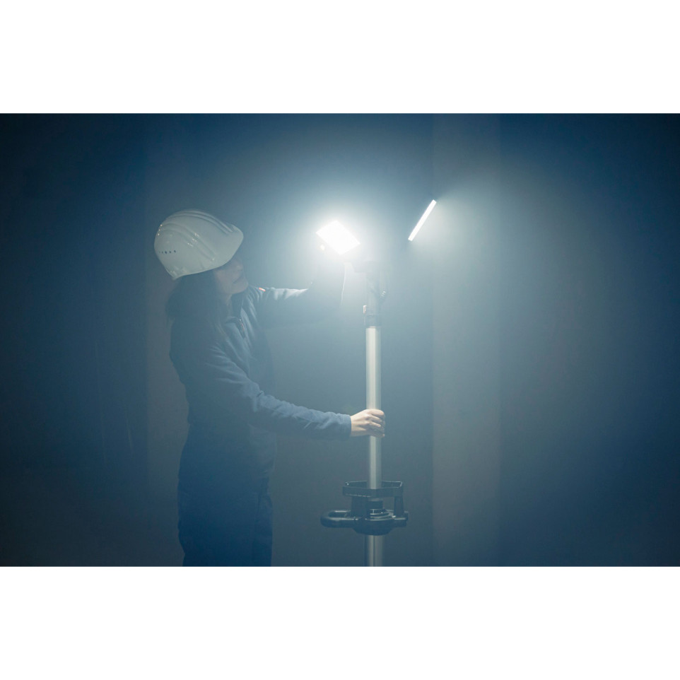 Le Professional Projecteur de chantier à LED à trois têtes sur trépied est idéal pour éclairer les chantiers, les espaces fermés ou les halls, offrant une puissance lumineuse de 13500 Lumen.
