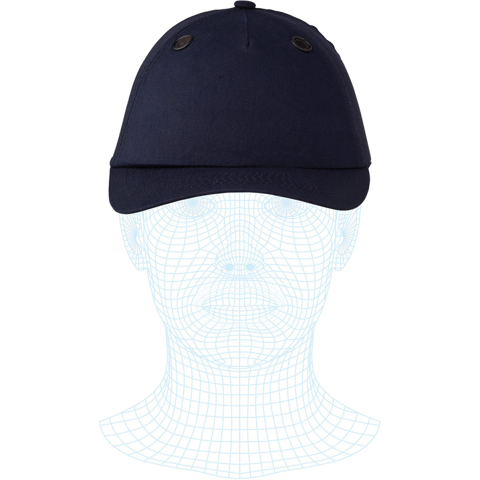 Casquette anti-heurt Arco au design baseball, coloris bleu marine, pensée pour la protection légère de la tête contre les chocs et éraflures dus aux plafonds bas ou objets en hauteur. Non conçue pour la protection contre la chute d’objets. Adaptée à l’équipement d’équipes complètes, elle peut être personnalisée ou décorée selon vos besoins d’image.