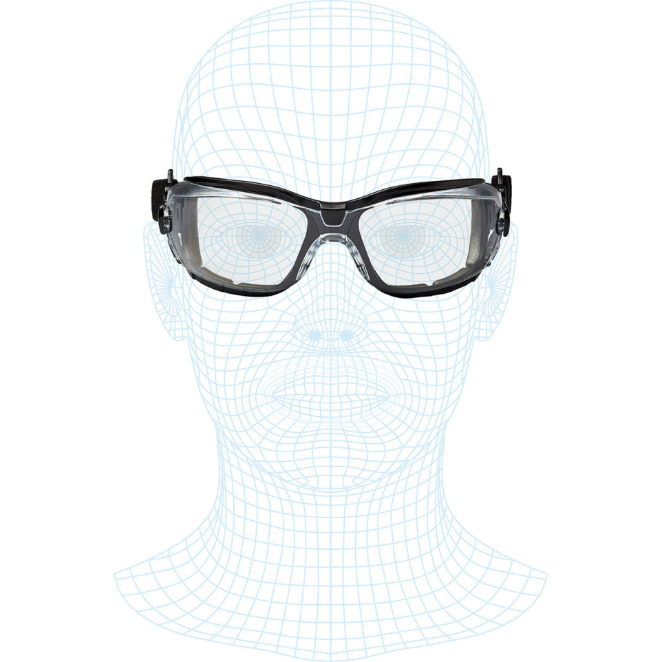 • Lunettes de sécurité hybrides, combinant les avantages de lunettes et de masques grâce à une mousse en EVA intégrée, assurant une protection contre la poussière et un confort optimal au contact du visage.