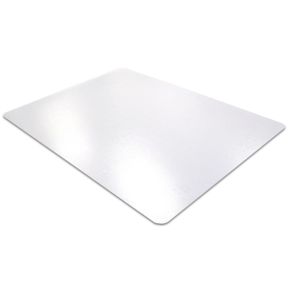Tapis de sol rectangulaire Floortex Cleartex Advantagemat, dimensions 116 x 150 cm, conçu en PVC transparent de 2,2 mm d’épaisseur pour la protection efficace des surfaces dures dans les environnements de bureau.