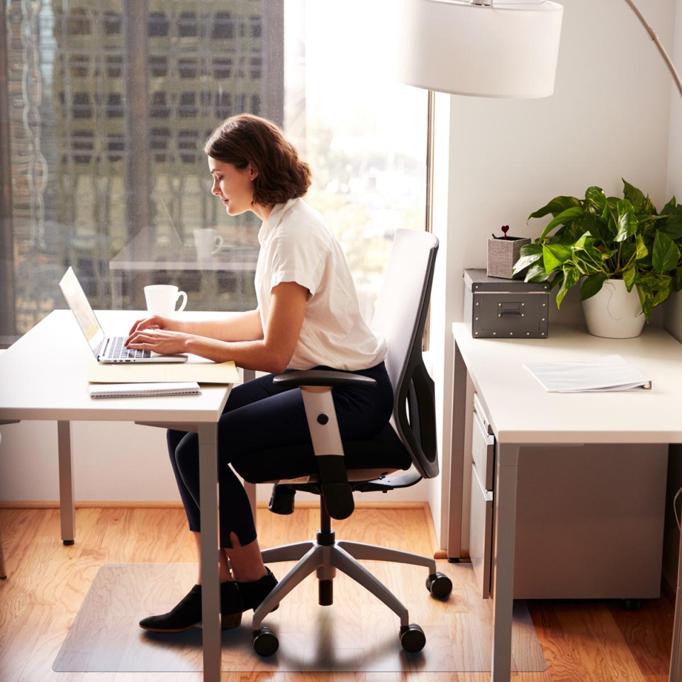 Placez simplement le tapis sur votre surface dure avec la face lisse vers le bas. Sa surface ergonomique facilite le glissement des chaises à roulettes, réduisant la fatigue des jambes et du bas du dos tout en protégeant votre sol des rayures, de l'usure et des déversements accidentels.