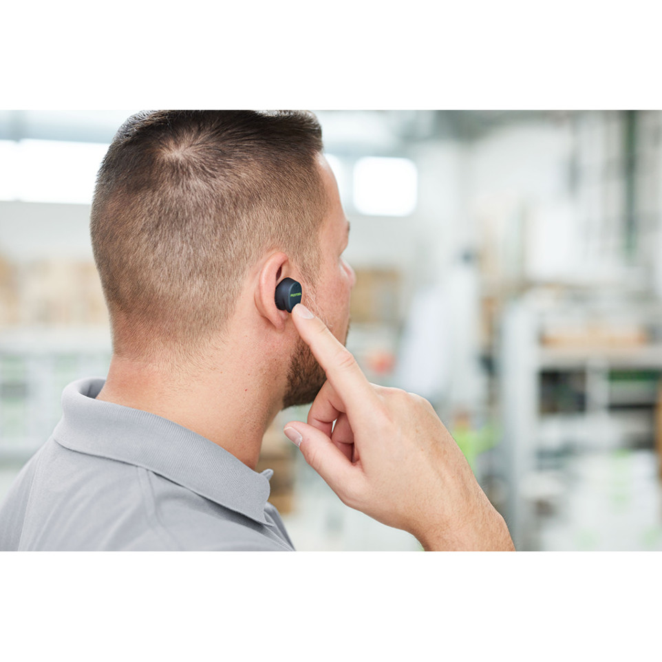 Kit de protection auditive multifonction Festool GHS 25 I conçu pour les professionnels, idéal sur les chantiers ou en atelier, permettant de protéger efficacement l’ouïe tout en restant connecté grâce à ses fonctions avancées.