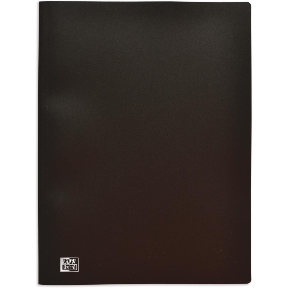 Protège-documents Oxford pour format A4, doté d’une couverture souple en polypropylène (PP) robuste, équipé de 100 pochettes grainées de 45 microns, couleur noire. Idéal pour organiser et présenter documents professionnels, rapports ou dossiers administratifs.