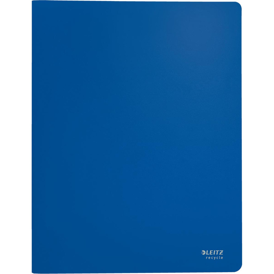 Protège-documents Leitz Recycle conçu pour le format A4, idéal pour organiser, protéger et présenter jusqu’à 80 feuilles grâce à ses 40 pochettes fixes en polypropylène bleu. Convient aux professionnels et aux étudiants soucieux de l’environnement.