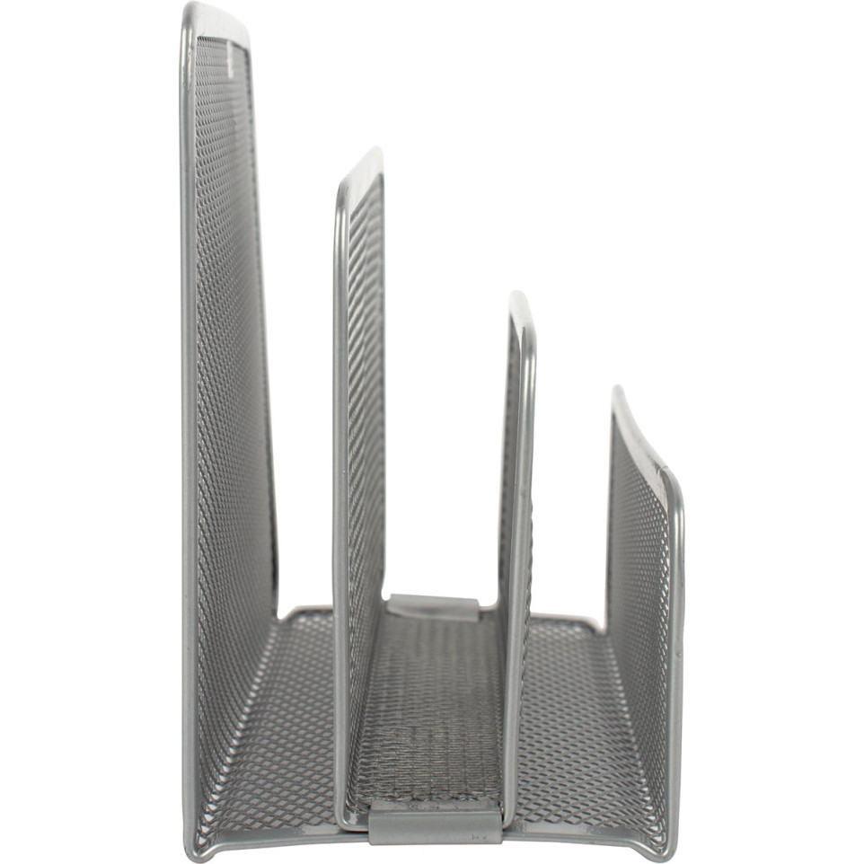 Porte-lettres en métal argenté à 3 compartiments, conçu pour organiser efficacement le courrier, les documents ou les dossiers sur un bureau professionnel ou personnel.