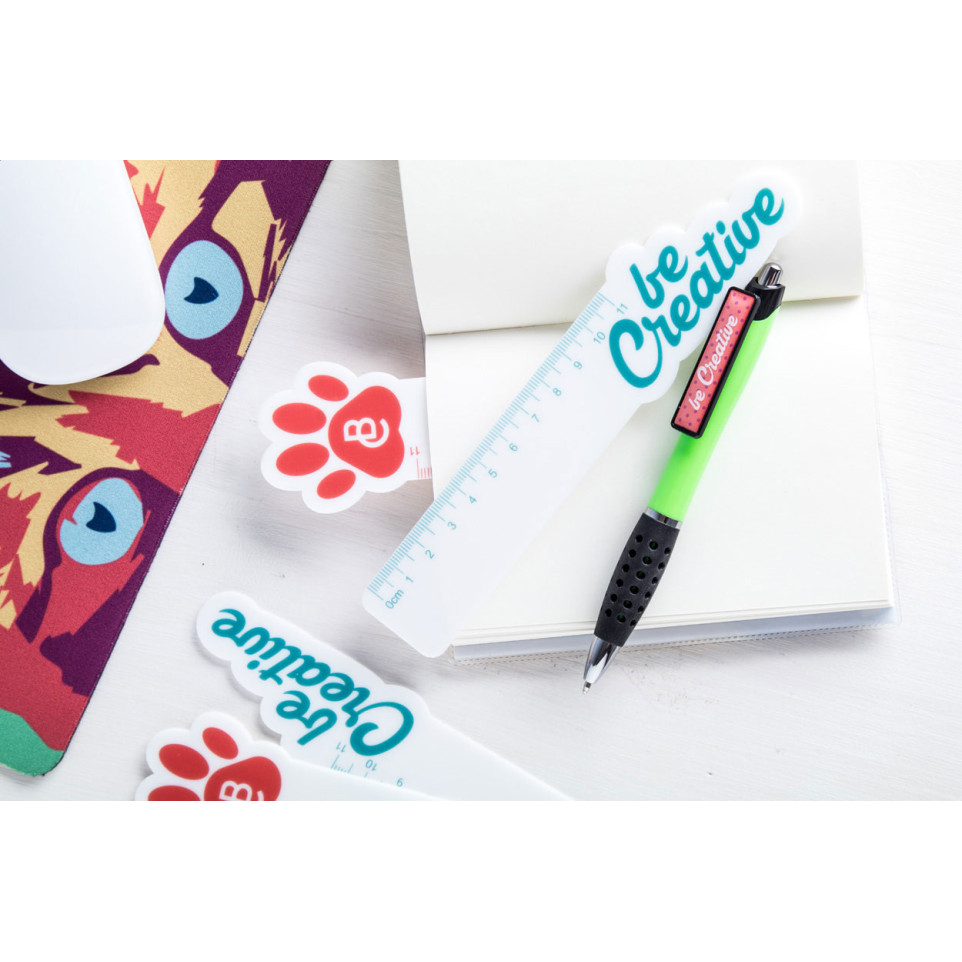 Ce modèle personnalisable permet de créer un support de communication original qui véhicule efficacement l’identité de marque grâce à sa zone imprimable sur-mesure. Utilisez cette règle lors de salons ou foires, comme cadeau d’entreprise, pour la distribution lors d’actions de street marketing, animation sur point de vente, ou lors de l’accueil de nouveaux collaborateurs : elle valorise vos couleurs tout en étant utile au quotidien. Son format compact garantit un fort taux de conservation, renforçant votre image auprès de chaque utilisateur.