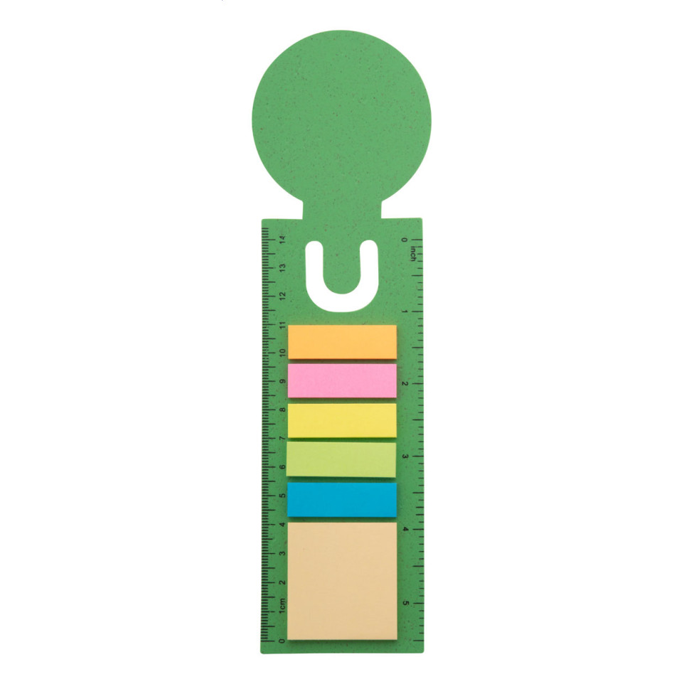 Le WheaMark vert est un marque-pages multifonction fabriqué en plastique écologique à base de paille de blé, intégrant une règle de 13 cm, 25 notes adhésives repositionnables et 125 marqueurs de page en 5 couleurs. Idéal pour organiser la lecture, annoter des documents et mesurer précisément au bureau ou à l’école.