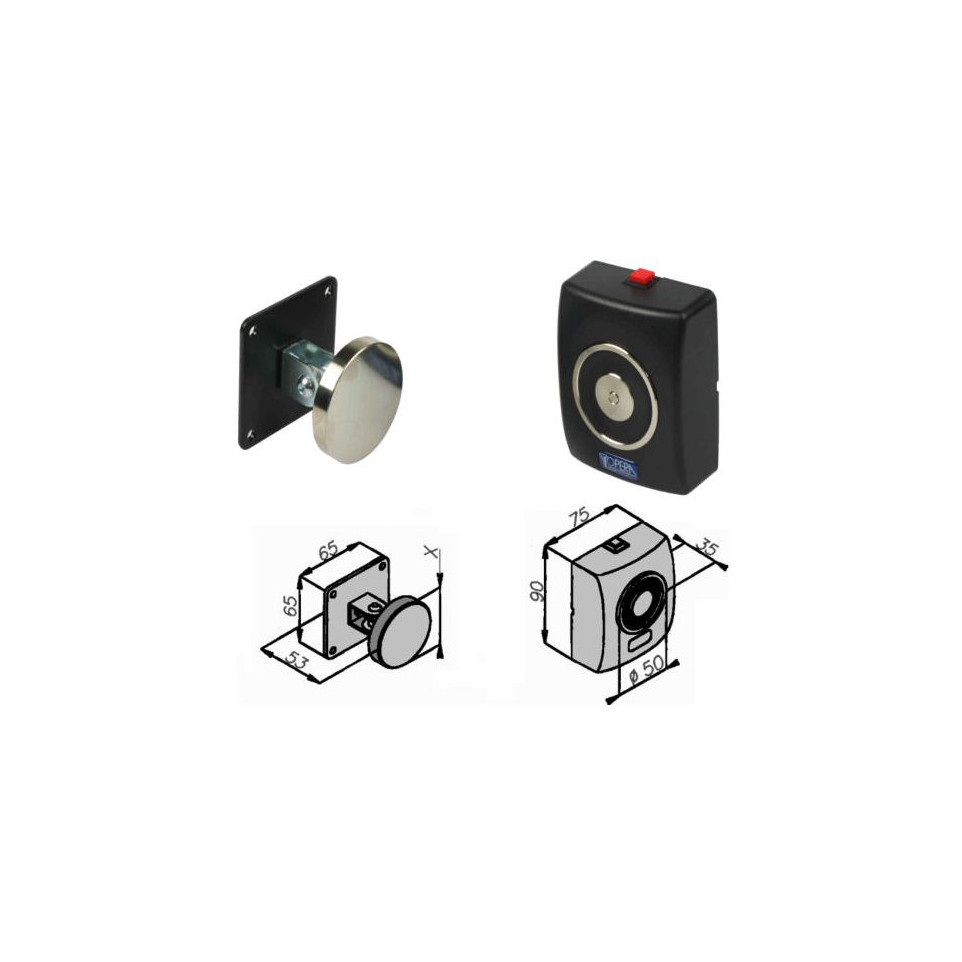 Ce rétenteur mural s’installe en fixation murale à proximité de la porte à sécuriser. Lorsque l’alimentation est activée, la porte est maintenue ouverte par l’aimant ; en cas de coupure de courant ou d’appui sur le bouton poussoir, la porte est libérée. L’éjecteur intégré assure une libération sans blocage.