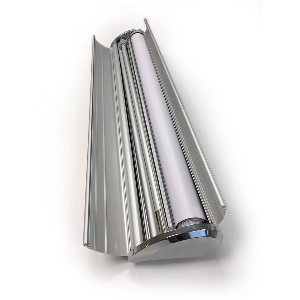 De tous les modèles de rollup, le kakemono enrouleur Deluxe est le plus luxueux. Sa grande solidité et ses finitions de très haute qualité font de ce stand enrouleur, le modèle le plus apprécié pour une utilisation régulière et répétée.