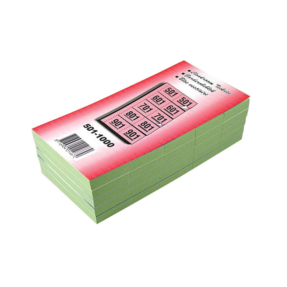 Carnet pour vestiaire numéroté de 501 à 1.000, coloris vert. Idéal pour gestion de vestiaires dans les établissements recevant du public : salles de sport, événements, écoles, entreprises.