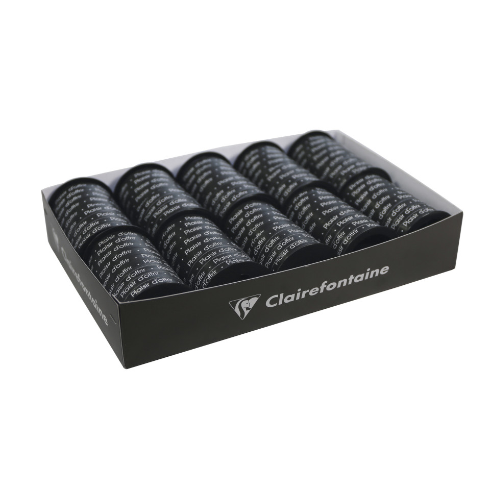 Plateau 10 bobinaux 10mx10mm, Plaisir d'offrir N/B Un ruban imprimé ''Plaisir d'offrir'' pour des cadeaux élégants et design. Bolduc fabriqué à base polypropylène qui vous permettra d'embellir vos paquets cadeaux et qui donnera une touche élégante à vos paquets. Fabriqué en France.