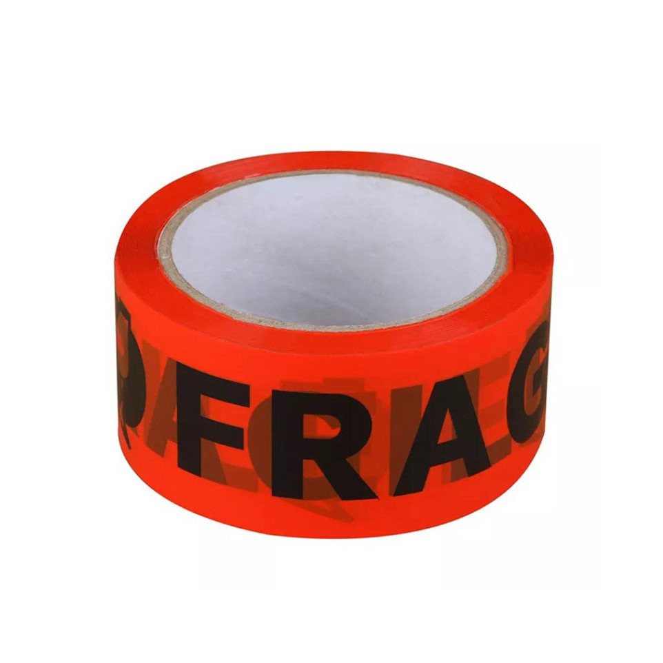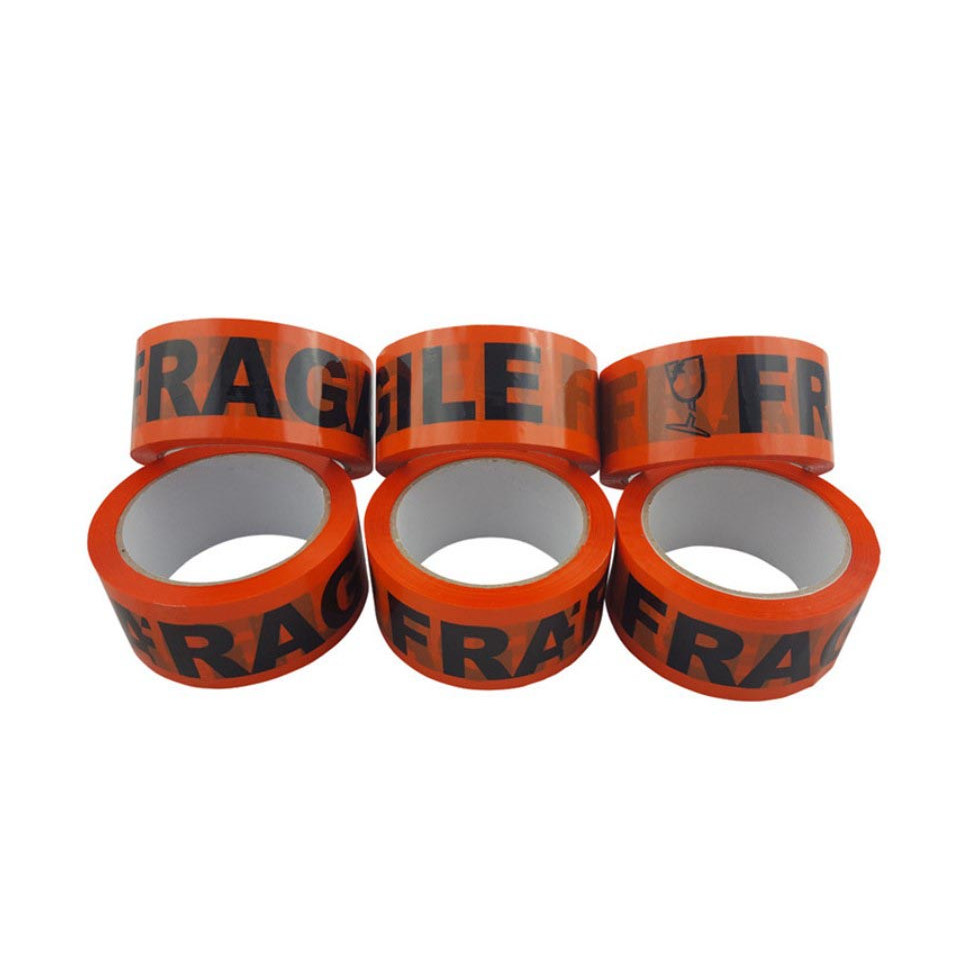 Ruban adhésif d’emballage orange avec inscription « Fragile », dimensions 50 mm x 66 m, conçu pour sécuriser et identifier les colis contenant des objets délicats lors du transport et du stockage.