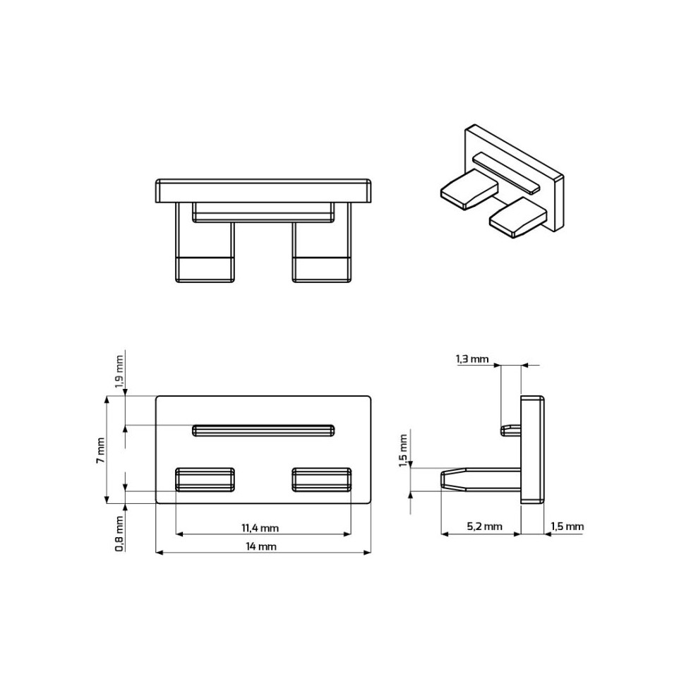 Ses dimensions sont de 14 x 7 mm, adaptées aux profils Line mini.