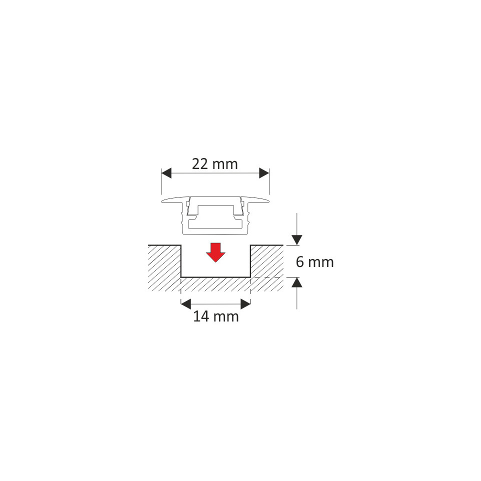 Ce profil s’installe dans une rainure prédécoupée de 14 mm de largeur et 9 mm de profondeur. Il suffit de placer le ruban LED à l’intérieur, de refermer avec le diffuseur, puis d’encastrer le tout dans le support. Convient pour l’éclairage d’ambiance, de plans de travail ou d’éléments décoratifs dans l’habitat ou les espaces professionnels.