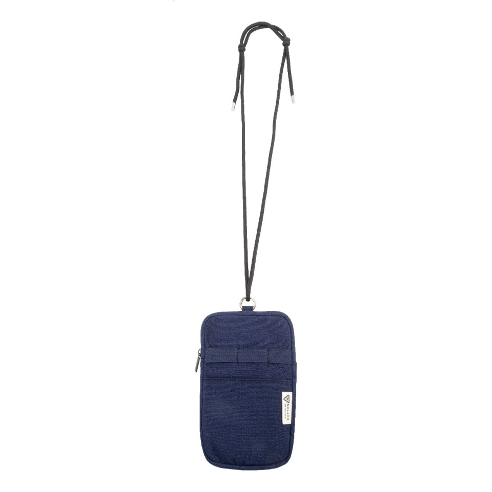 Sac à l'épaule compact pour téléphone portable, conçu en canvas recyclé, doté d’un compartiment principal zippé, d’une poche frontale pratique et d’un cordon réglable en polyester RPET. Adapté au quotidien et aux déplacements.