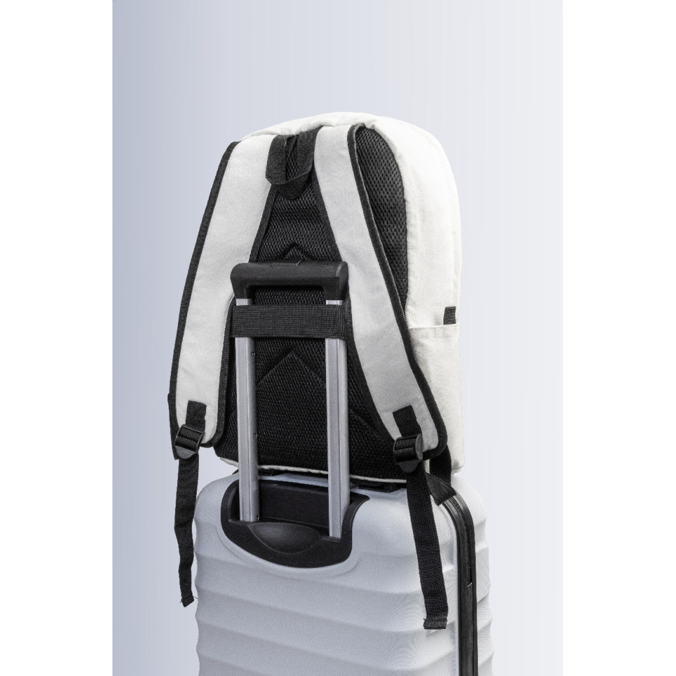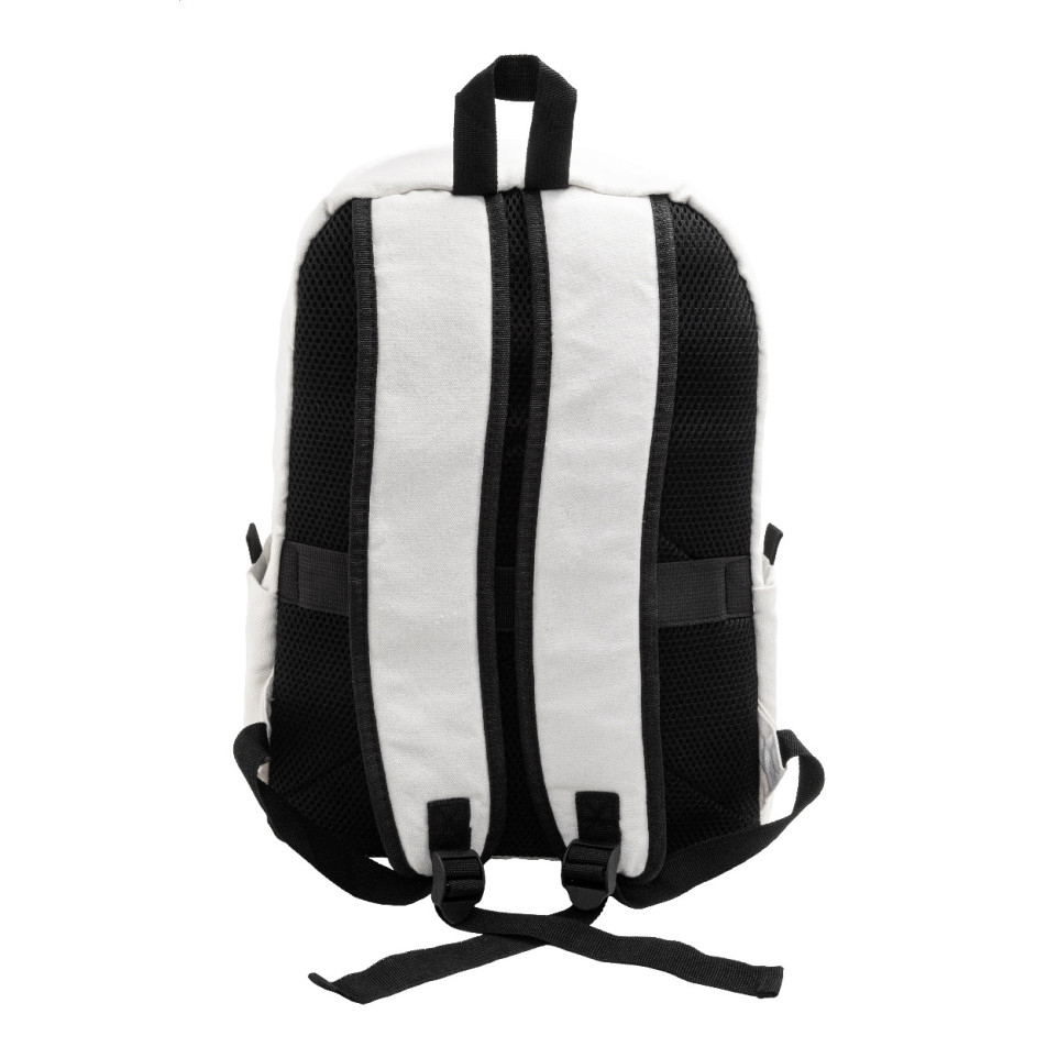 Sac à dos en canvas recyclé, conçu pour le quotidien urbain ou les déplacements professionnels, doté de multiples compartiments pour un rangement optimal et d’un espace dédié pour ordinateur portable 15 pouces.