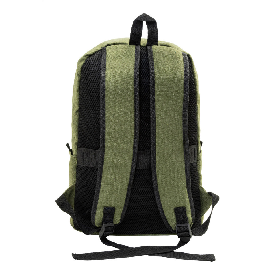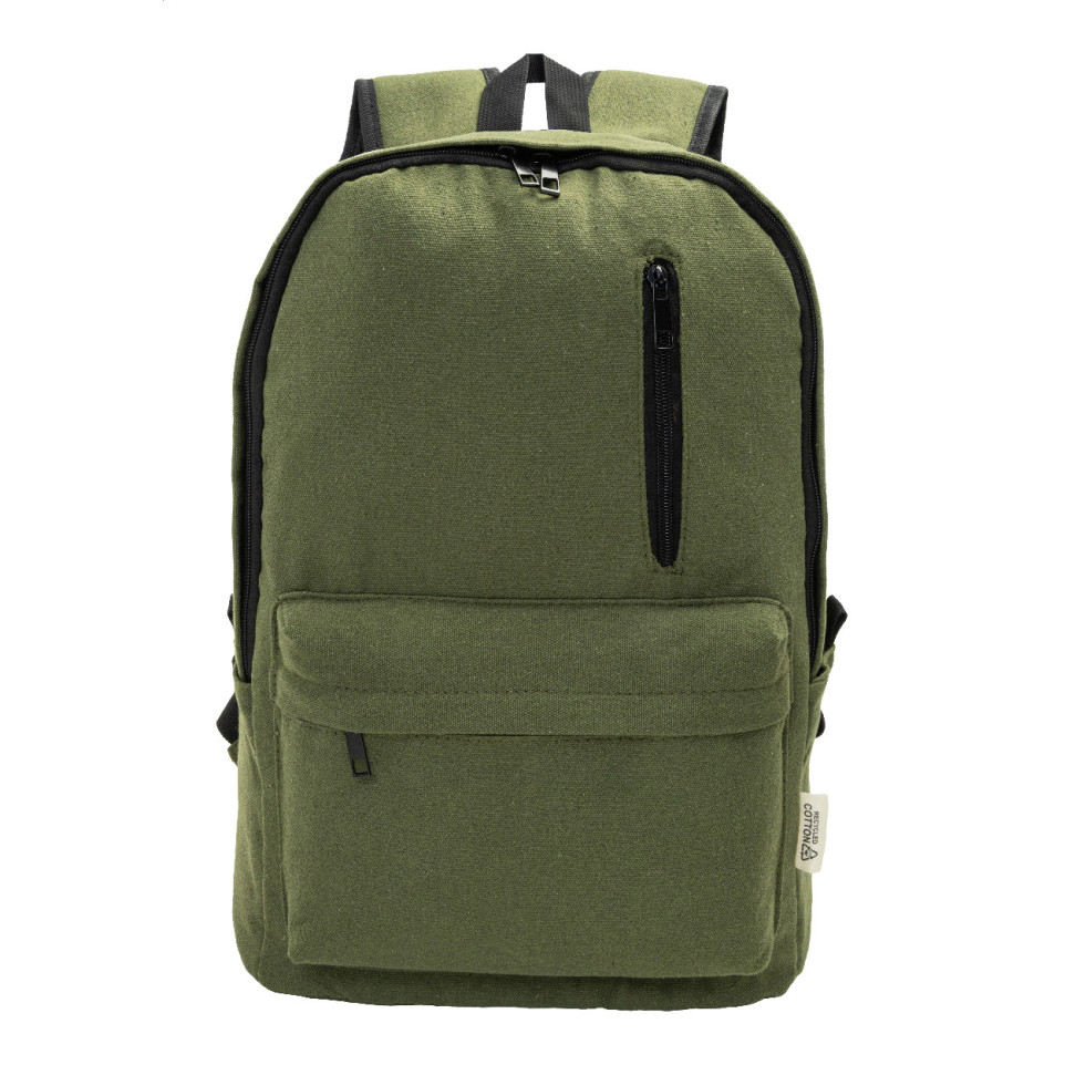 Sac à dos vert pratique en canvas recyclé, parfait pour transporter votre ordinateur portable et vos effets personnels au quotidien ou lors de déplacements professionnels.