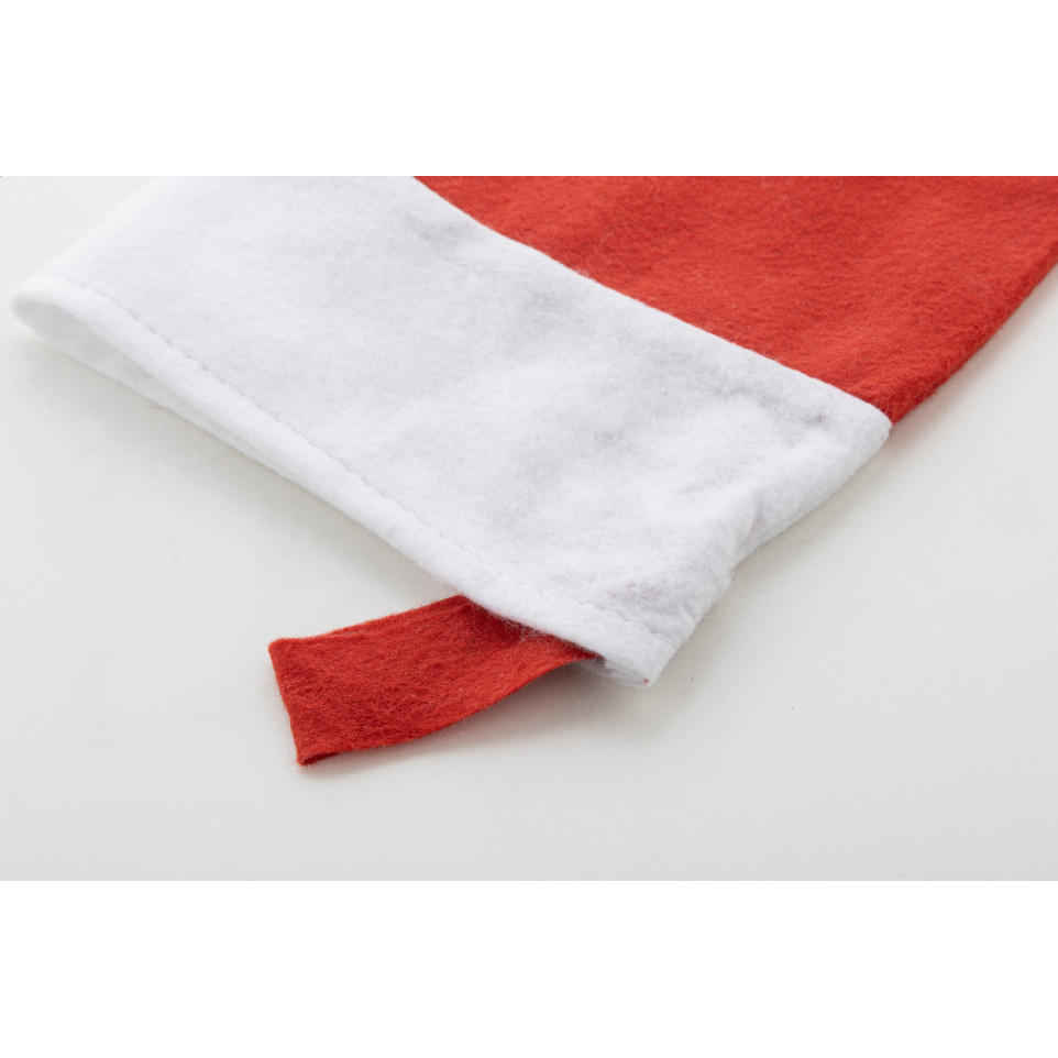 Chaussette de Noël décorative en feutrine RPET rouge, pensée pour accueillir des petits cadeaux, friandises ou messages festifs. Idéale pour la décoration intérieure, les sapins ou comme accessoire d’emballage original en période de fêtes.