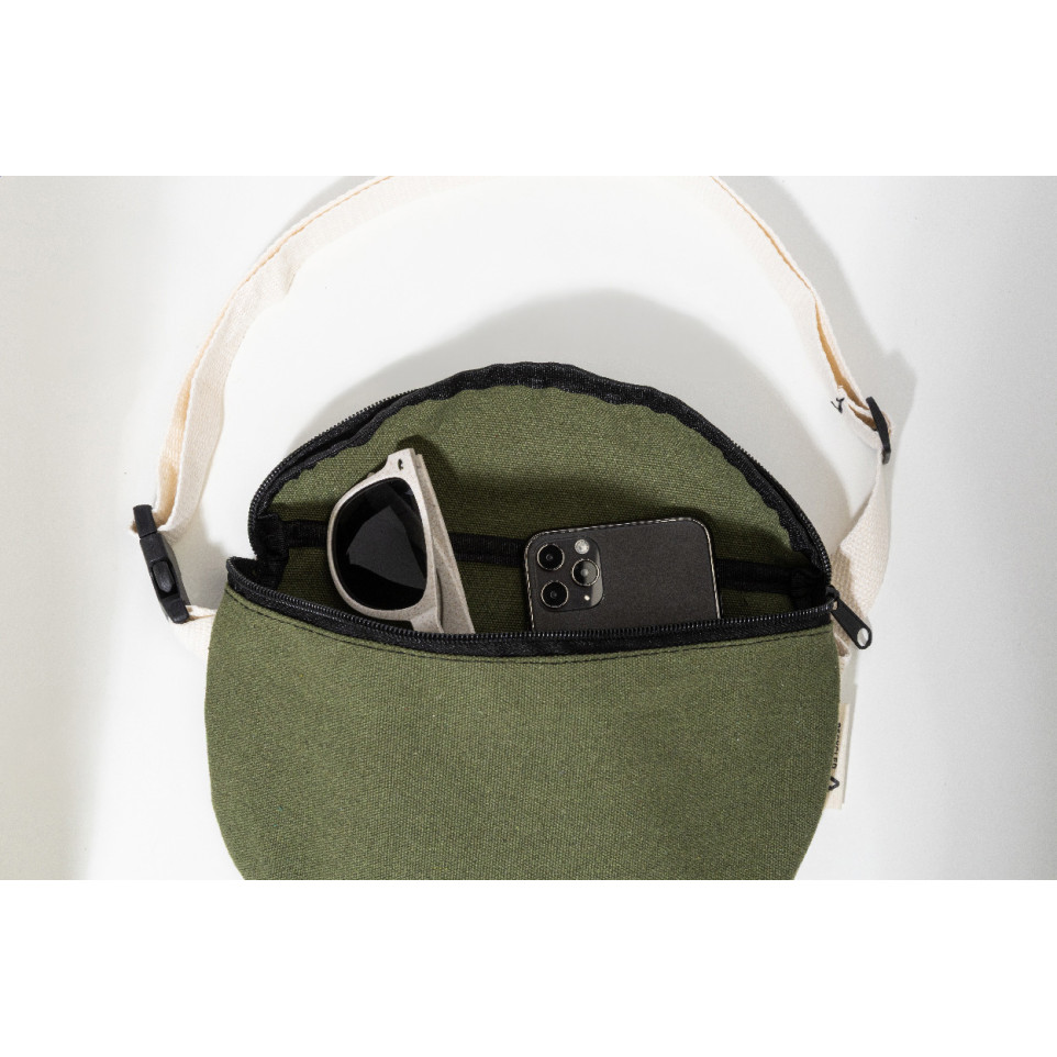 Sac banane en canvas recyclé doté d’un compartiment zippé et d’une sangle réglable. Idéal pour garder essentiels et objets personnels à portée de main lors des déplacements quotidiens ou événements extérieurs.