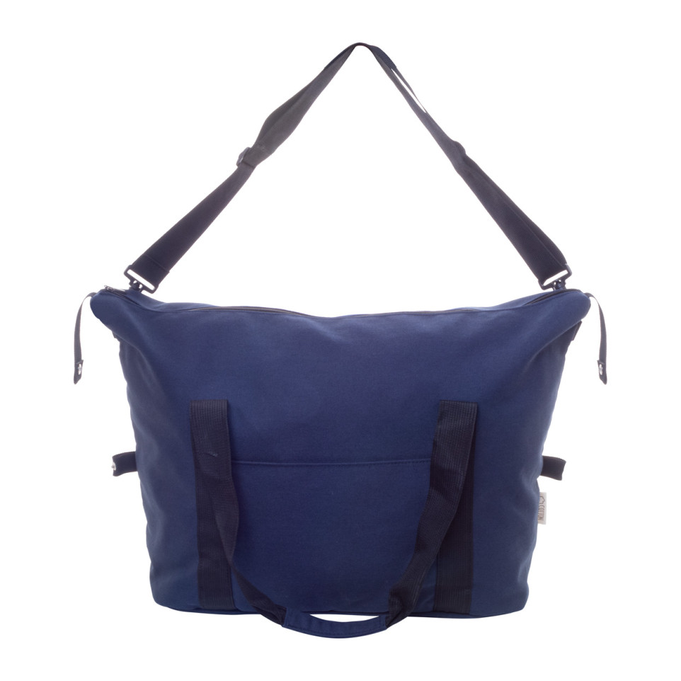 Le Rebyss Travel est un sac de voyage en toile recyclée bleu foncé, idéal pour les déplacements professionnels ou les escapades sportives. Alliant fonctionnalité et engagement écologique, il répond aux besoins des voyageurs soucieux de l'environnement.