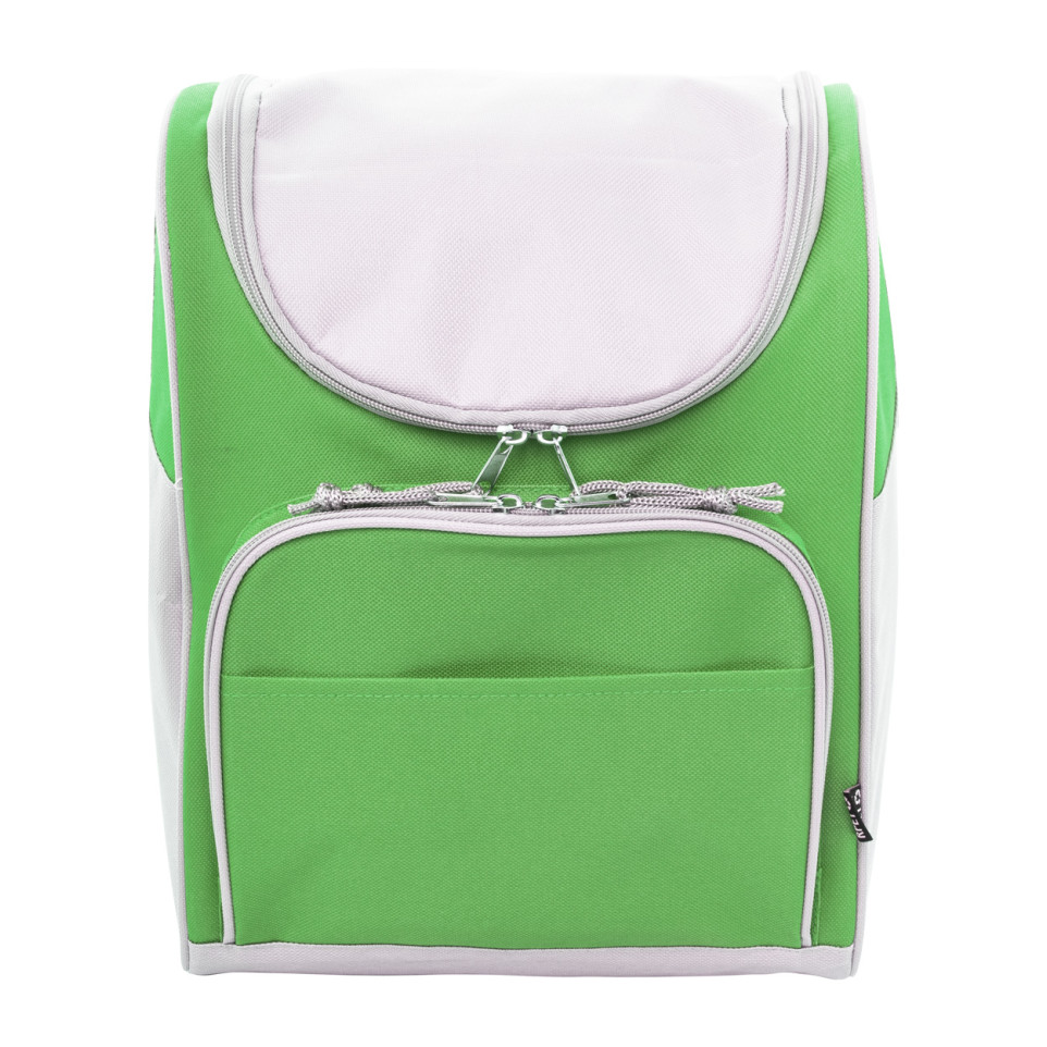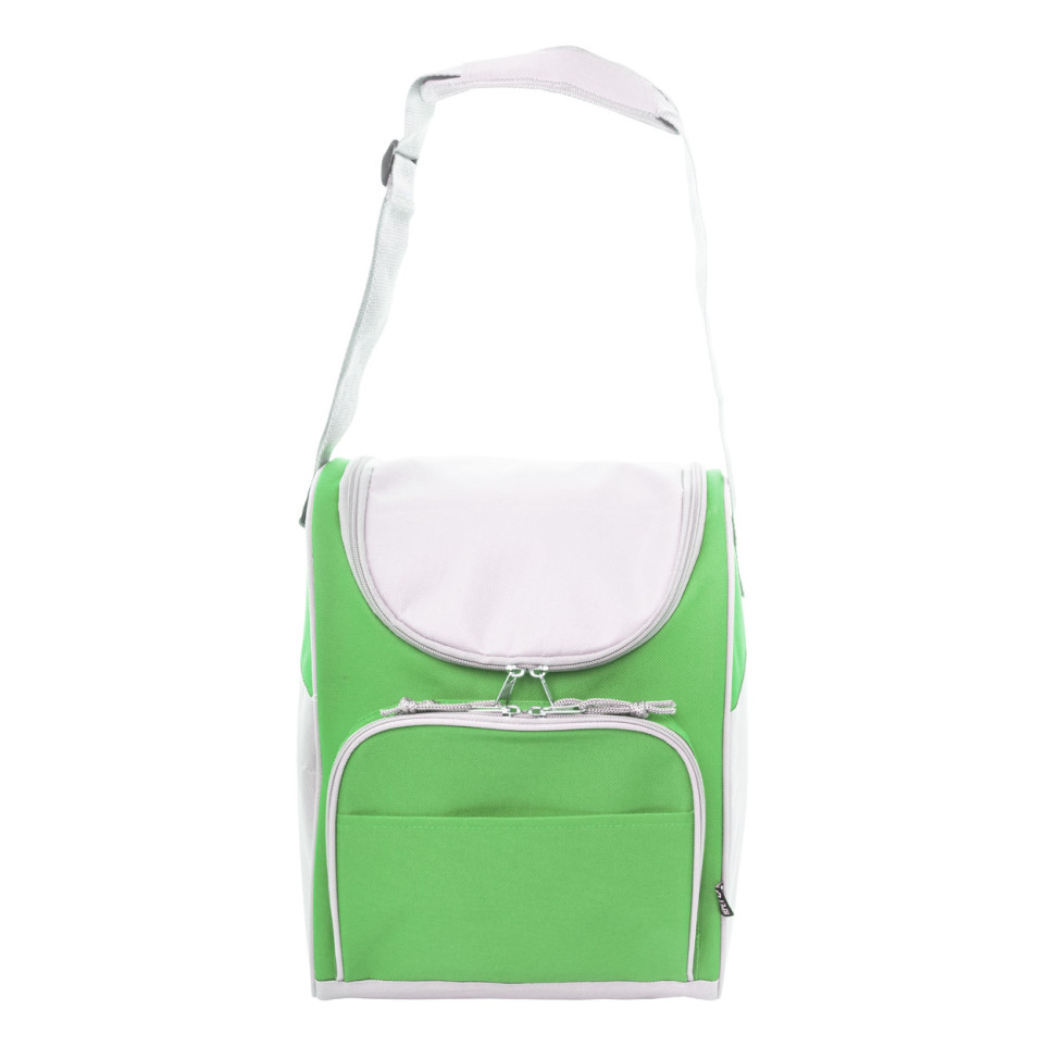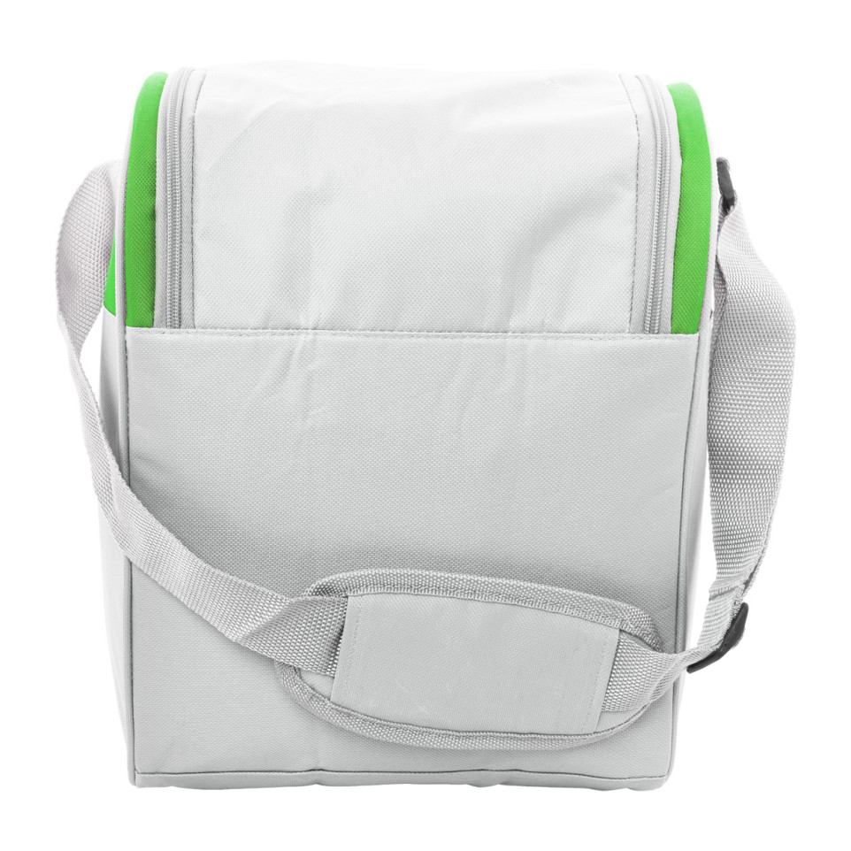 Sac isotherme vert en RPET doté de deux compartiments zippés, d’une petite poche avant pratique et d’une bandoulière réglable. Idéal pour conserver repas et boissons au frais lors de déplacements, pique-niques ou activités extérieures.
