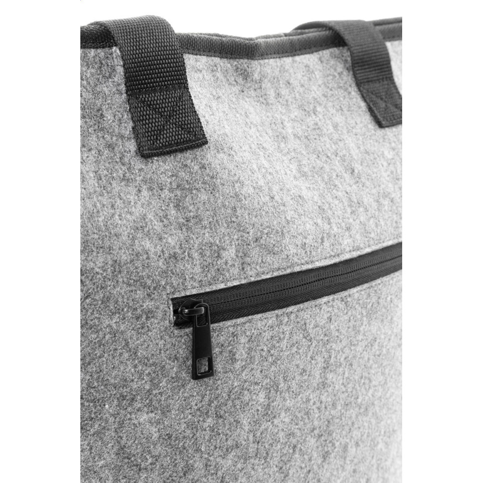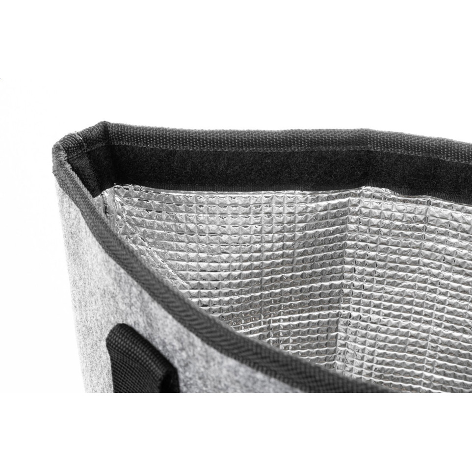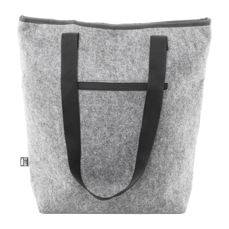 Sac shopping isotherme en feutrine grise RPET, idéal pour conserver la fraîcheur des aliments lors de vos courses, pique-niques ou déplacements quotidiens. Pratique grâce à sa grande capacité et à ses anses longues pour un port confortable.