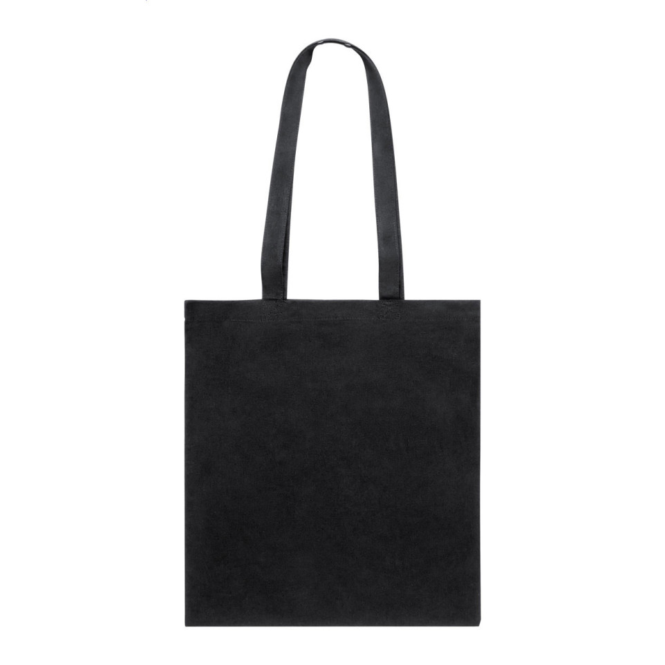 Tote bag en coton noir de 180 g/m² avec anses longues, parfait pour les achats quotidiens, les sorties en ville ou comme support promotionnel lors d'événements professionnels.