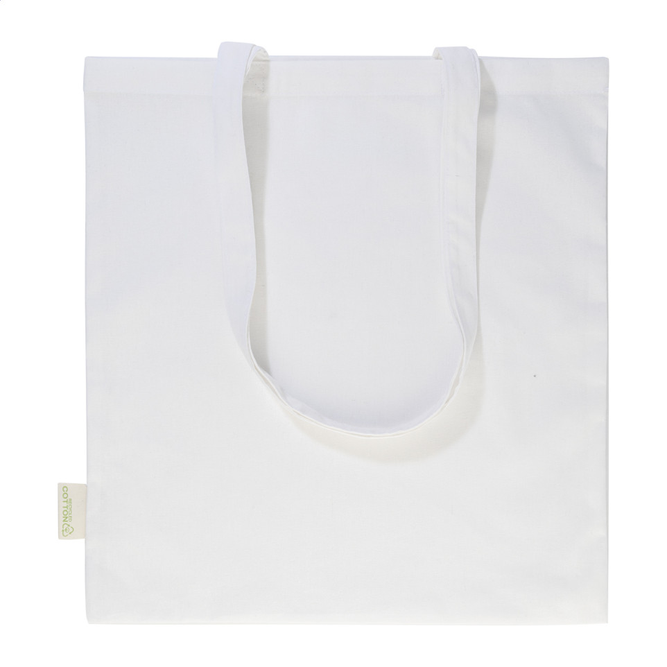 Le Totepex Hue blanc est un sac shopping à anses longues, fabriqué en coton recyclé et polyester RPET, idéal pour les courses quotidiennes ou comme accessoire promotionnel écoresponsable.
