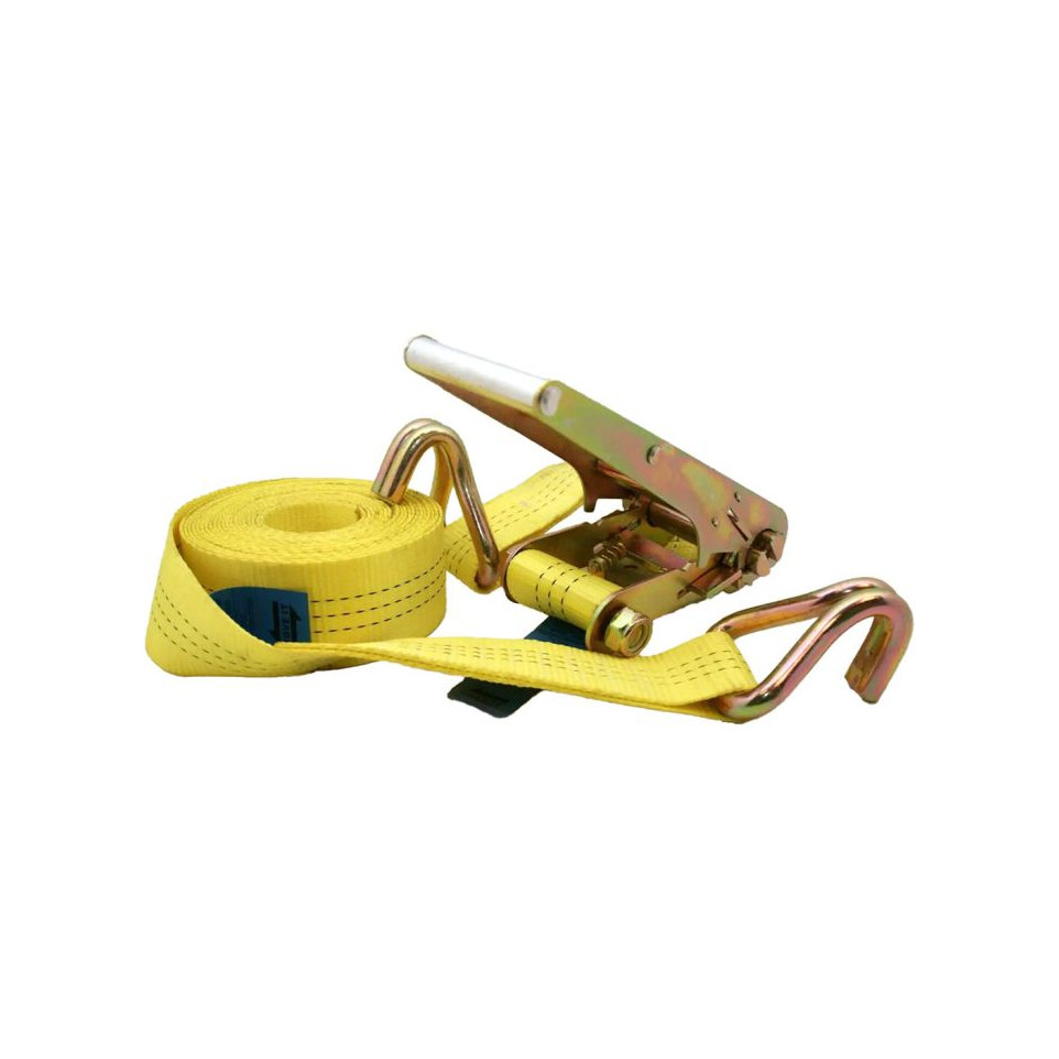 Installez les sangles en les passant autour de la charge et du point d'ancrage, puis tendez-les à l'aide du cliquet jusqu'à obtenir une tension optimale. Évitez toute torsion pendant l'installation et vérifiez régulièrement la tension pendant le transport.