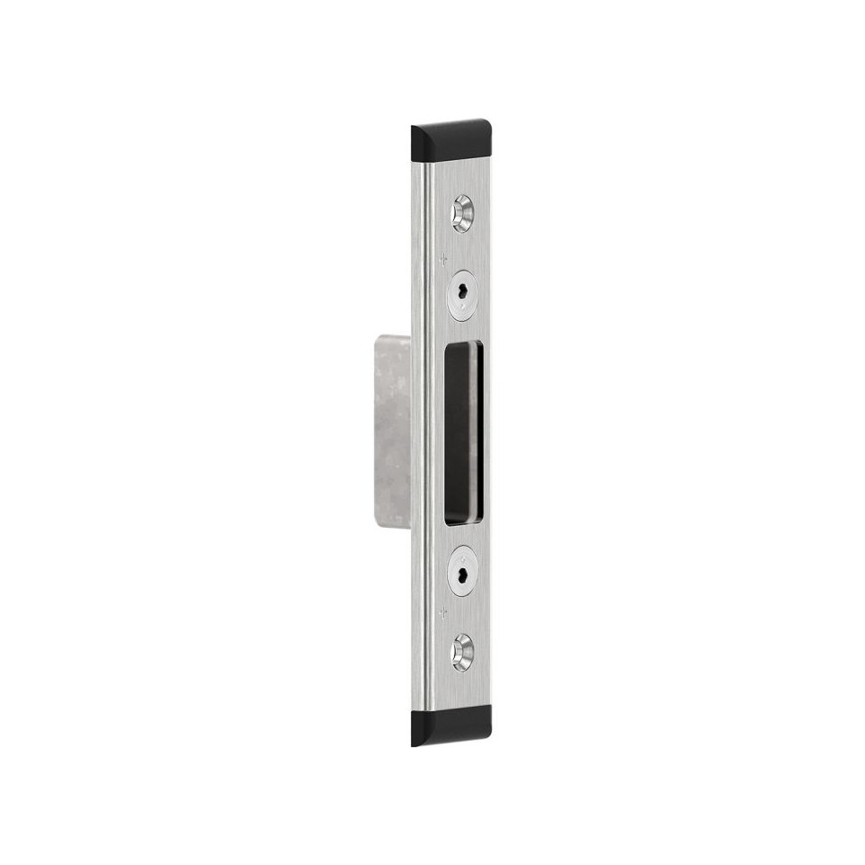La gâche se positionne au niveau du dormant de la porte, accueillant les pênes central, haut et bas de la serrure multipoints. Elle permet de sécuriser et maintenir la porte fermée en plusieurs points. L’installation est rapide, en remplacement ou pour une rénovation, assurant un ajustement précis et une sécurité renforcée contre les tentatives d’effraction.