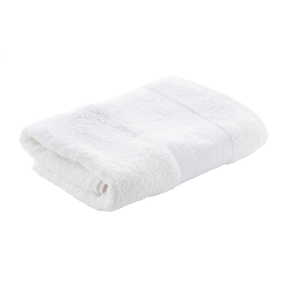 Serviette éponge blanche de taille moyenne (500 x 1000 mm), en 100% coton 400 g/m², avec un bord en polyester conçu spécialement pour l’impression en sublimation. Idéale pour usages quotidiens, hôtels, salles de sport ou événements.