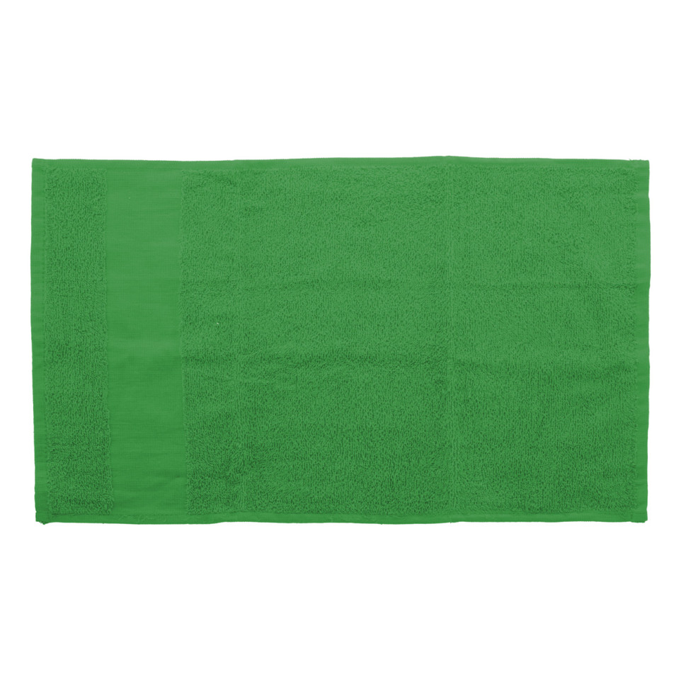 Voir des produits similairesServiette d'invité en coton éponge vert de 30x50 cm, idéale pour la salle de bains, les hôtels ou les espaces professionnels. Pratique grâce à sa boucle de suspension, elle convient à un usage quotidien ou événementiel.