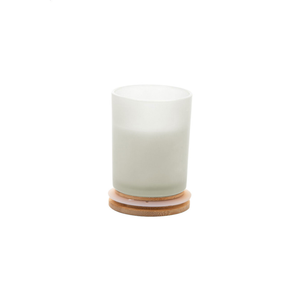 Bougie parfumée à la vanille, conçue en cire végétale, présentée dans un support en verre dépoli avec couvercle en bambou. Contient 120 grammes de cire pour créer une ambiance chaleureuse à la maison ou au bureau. Livrée dans une boîte en papier kraft.