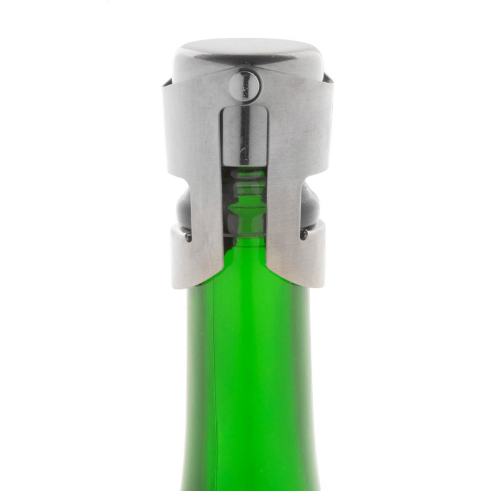 Bouchon à champagne Puglia argenté en métal, conçu pour préserver la fraîcheur et les bulles de vos bouteilles ouvertes. Idéal pour un usage domestique, professionnel ou lors de réceptions.