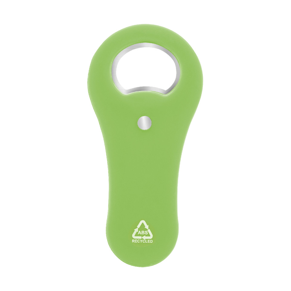 Décapsuleur magnétique en plastique ABS recyclé pour réfrigérateur. Cet accessoire pratique et écologique combine fonctionnalité et engagement environnemental tout en restant à portée de main dans votre cuisine.
