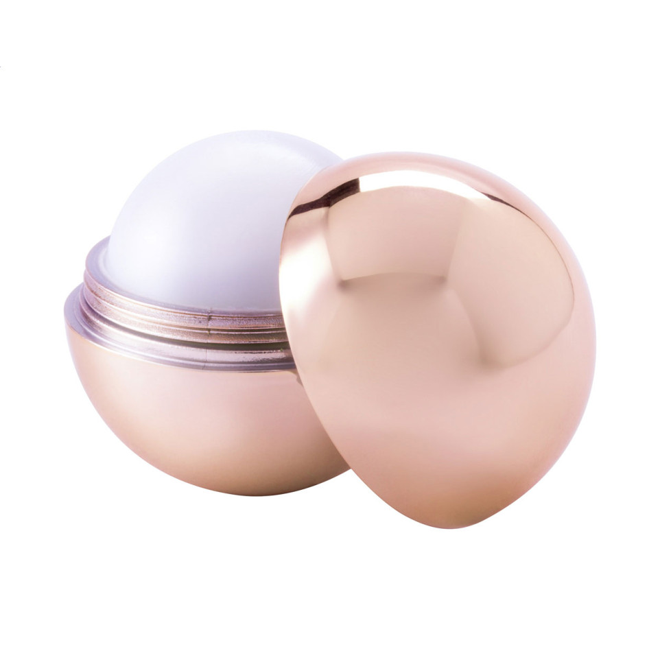 Baume à lèvres rond Baloris rose, présenté dans un élégant support métallique. Idéal pour protéger et hydrater les lèvres au quotidien, il offre une protection solaire SPF15, parfait pour un usage en intérieur comme en extérieur.