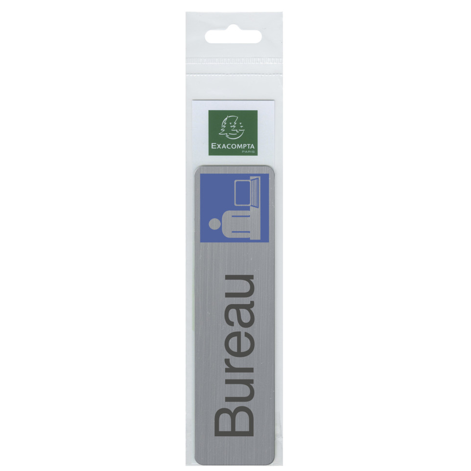 Plaque adhésive imitation aluminium Bureau 16,5X4,4 cm Une bonne signalétique est indispensable pour informer les usagers et leur permettre de se repérer. Ce panneau permet ainsi d'orienter les usagers en balisant correctement les espaces clés. Cette plaque imprimée sur un support d'épaisseur 0,8 mm, d'aspect aluminium brossé est auto-adhésive. Elle se fixe facilement et rapidement sur tous types de supports. L'encre traitée anti-UV garantie une très bonne tenue dans le temps de ce panneau. Fabriqué en France