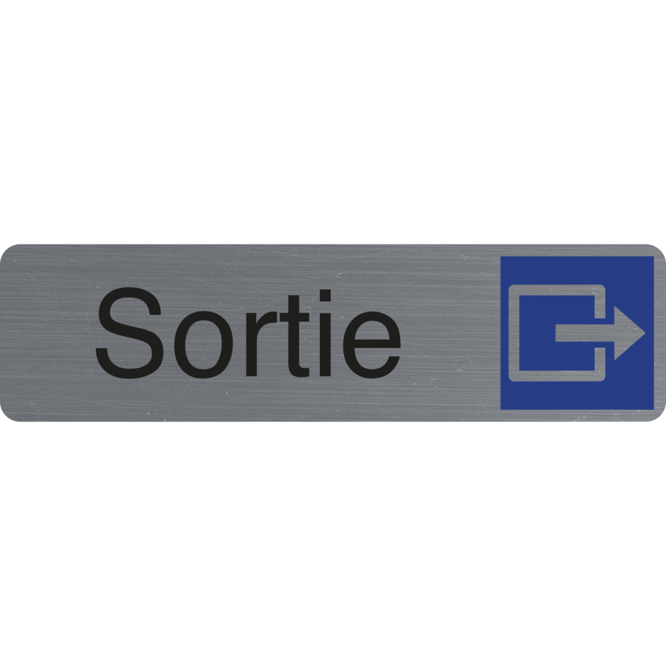 Plaque adhésive imitation aluminium Sortie 16,5X4,4 cm Une bonne signalétique est indispensable pour informer les usagers et leur permettre de se repérer. Ce panneau permet ainsi d'orienter les usagers. Cette plaque imprimée sur un support d'épaisseur 0,8 mm, d'aspect aluminium brossé est auto-adhésive. Elle se fixe facilement et rapidement sur tous types de supports. L'encre traitée anti-UV garantie une très bonne tenue dans le temps de ce panneau. Fabriqué en France